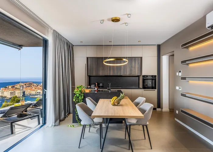広々とした90m²のドゥブロブニクAdrian Luxury 5 StarアパートメントはStudio Aplikaから徒歩で5分の場所に位置し、都市の景色を見渡せます。 スルジ山ロープウェイから2.8kmで、寝室2室のアパートはスポンザ宮殿すぐ近くです。
